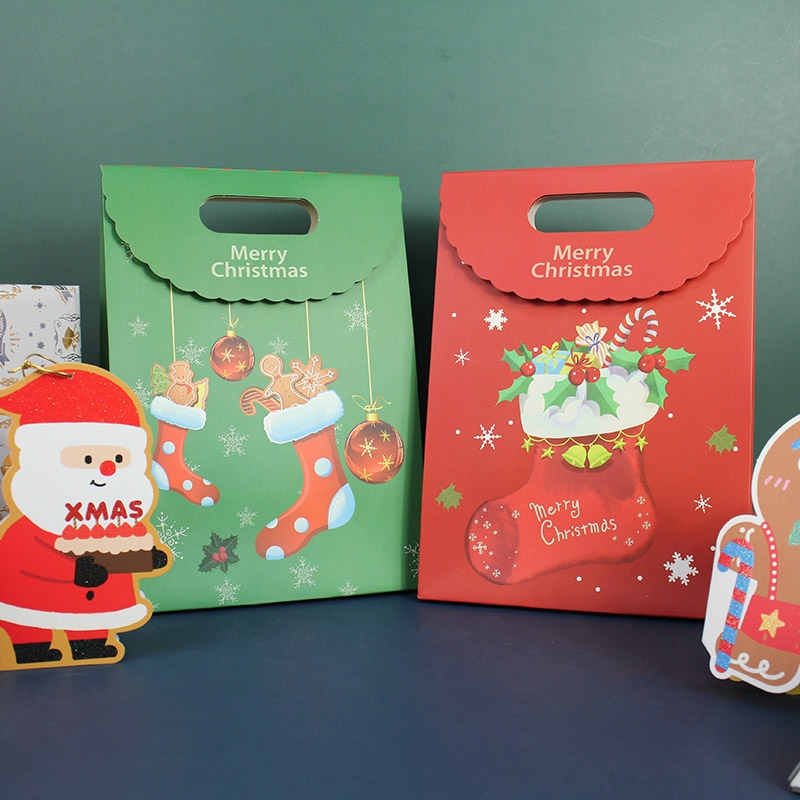 耶誕打洞手提紙袋(中)/耶誕送禮/交換禮物/聖誕禮物袋/禮品包裝袋/魔鬼氈紙袋