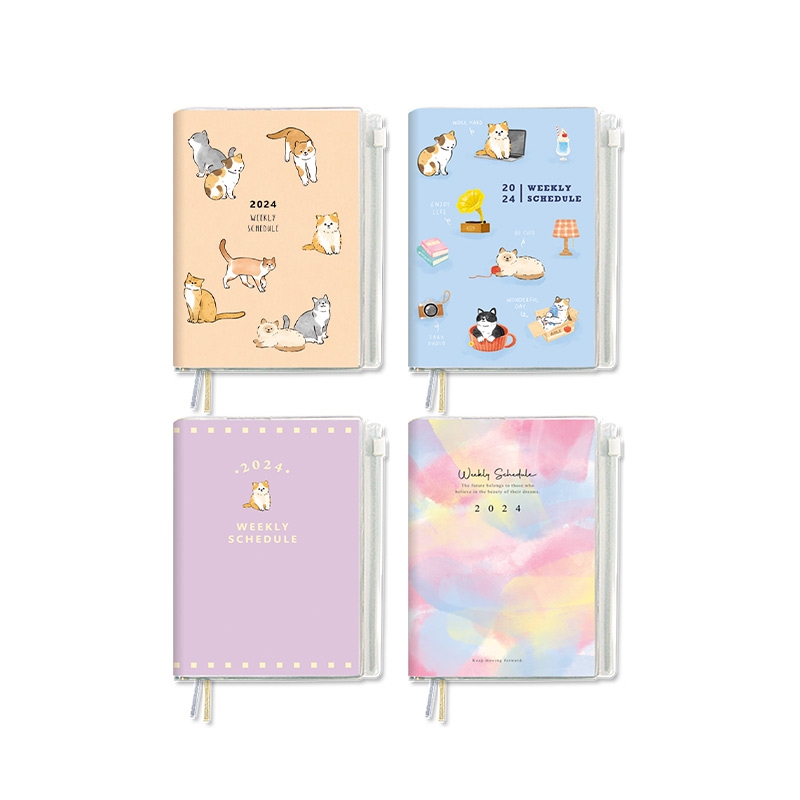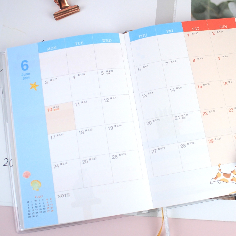2024年B6/32K彩色年度週誌/週計劃+收支/家計手帳/PVC書套/記事本/筆記本