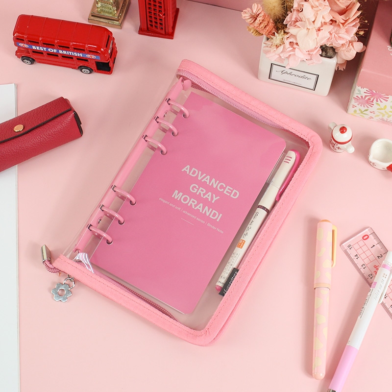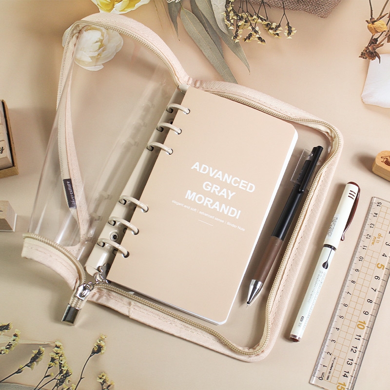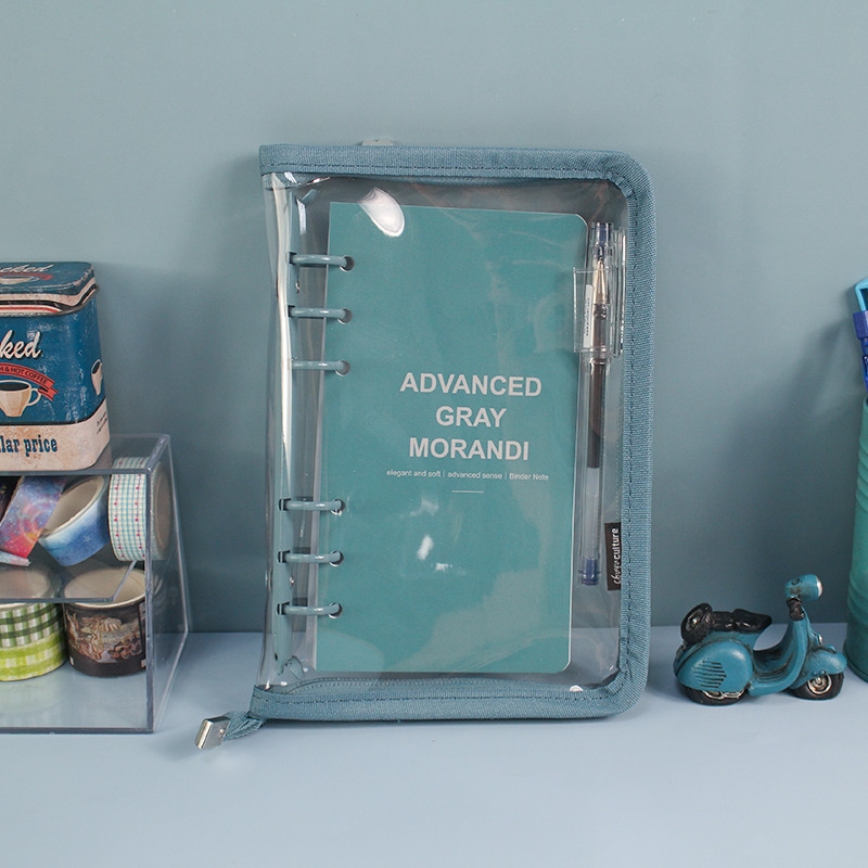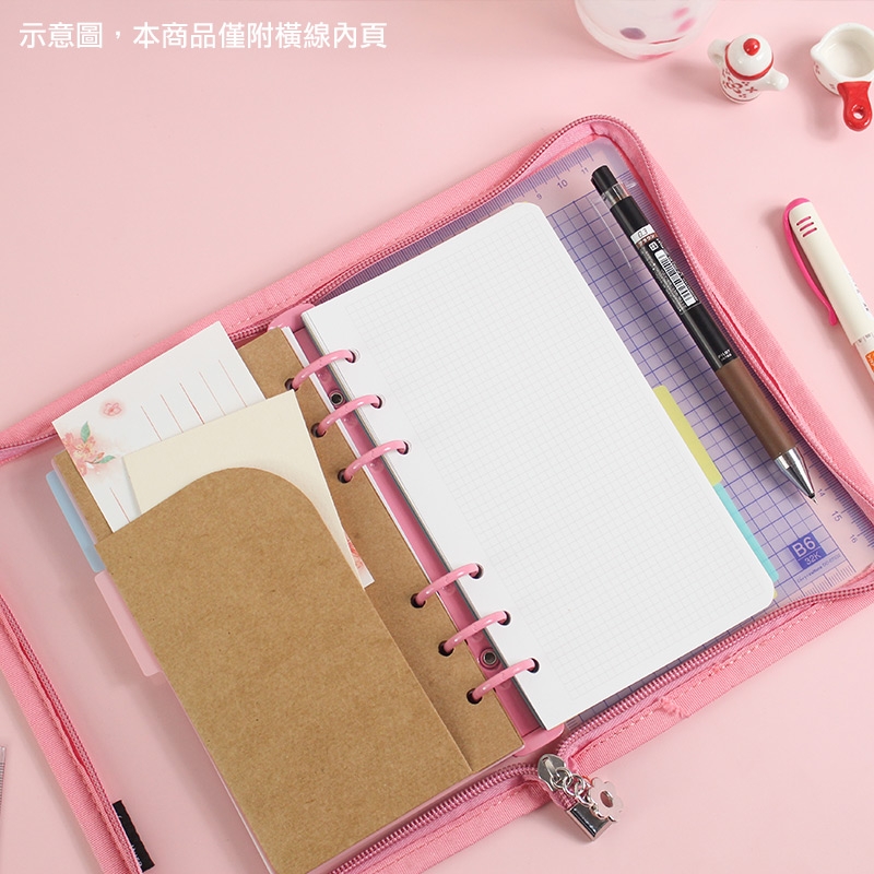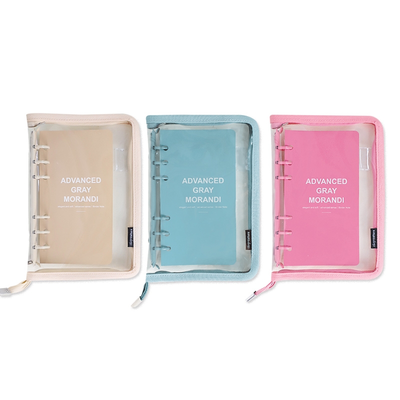 B6/32K 6孔拉鍊包萬用手冊/附40張橫線內頁/莫蘭迪色6孔活頁筆記本/手帳本/簡約PVC透明軟殼