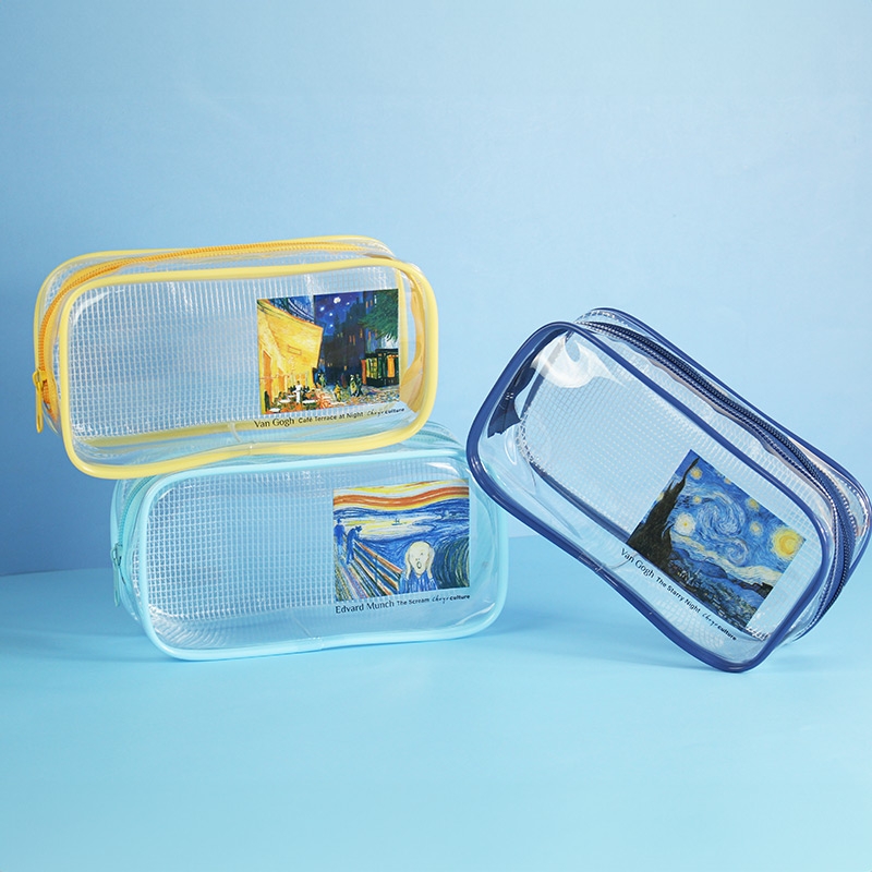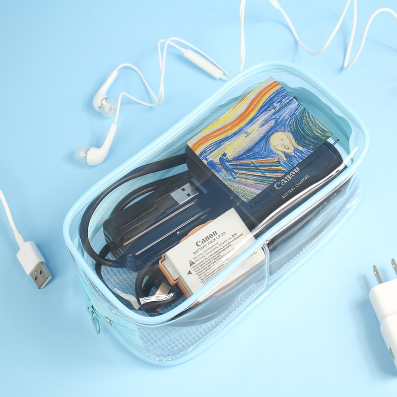 透明網格收納筆袋/曬娃包/溜娃包/遛娃包/透明文具袋/萬用收納包/化妝包/防水盥洗包/大開口大容量收納袋