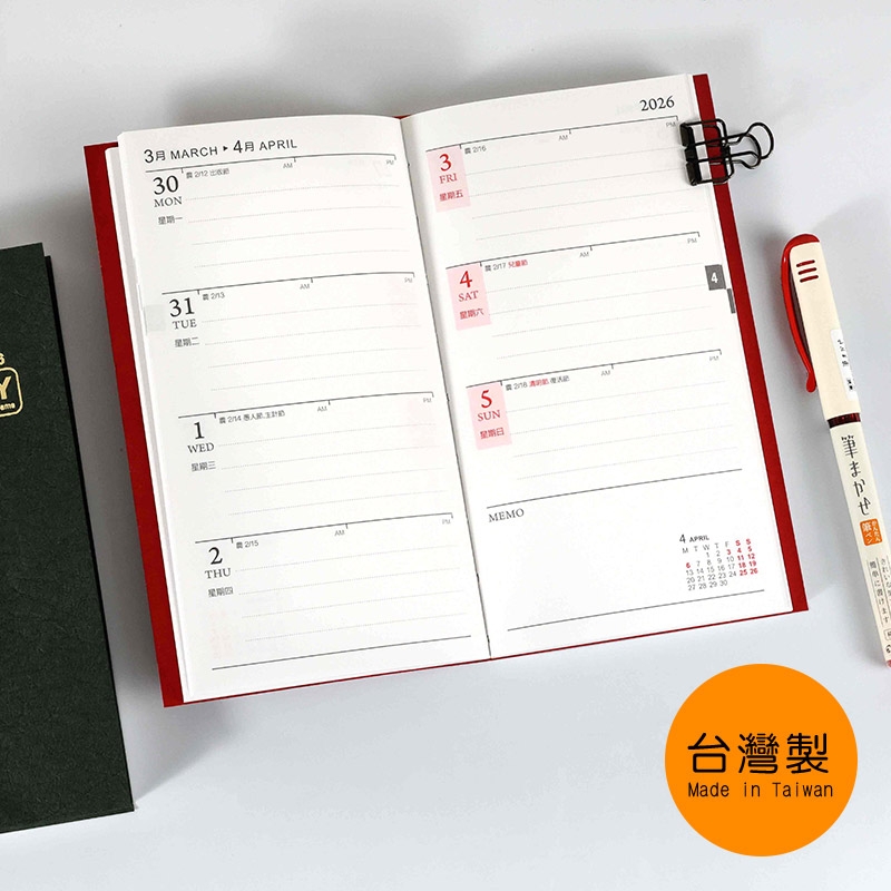 2026年48K年度工商日誌手帳/週誌手札行事曆/效率工作紀錄/年度計劃本(1週2頁/左四右三)-補充內頁