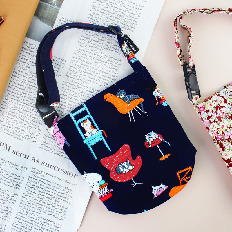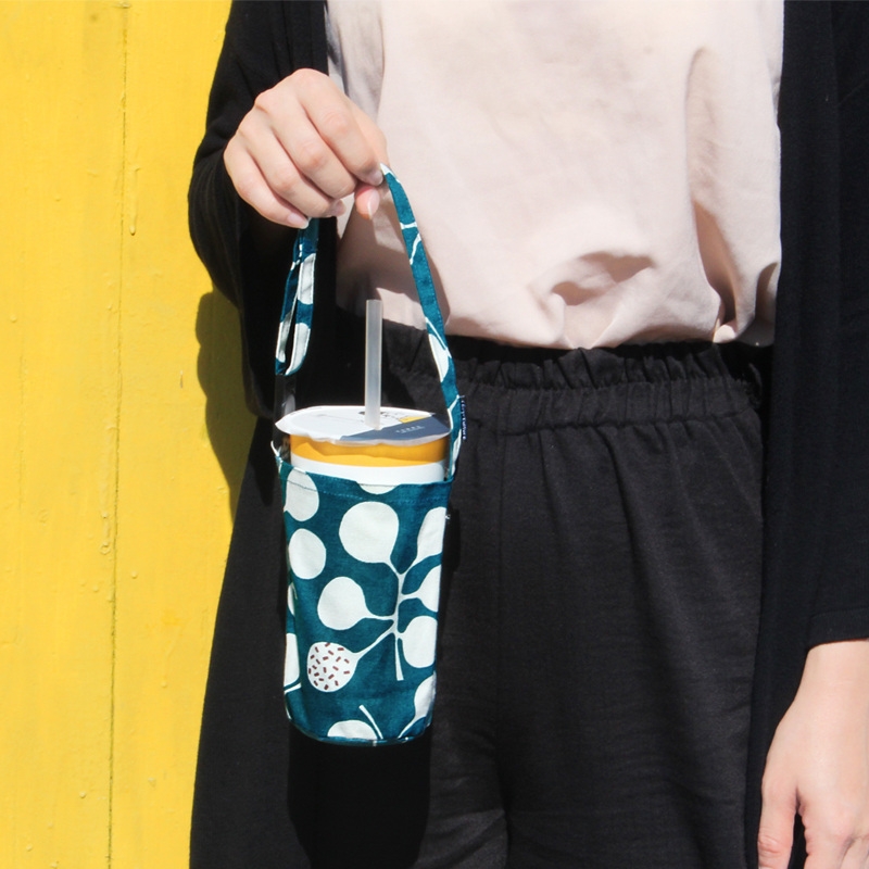 【促銷】台灣花布可調式提把飲料袋/附插扣收納扣/減塑行動環保杯套/飲料杯提袋/酒精瓶提袋