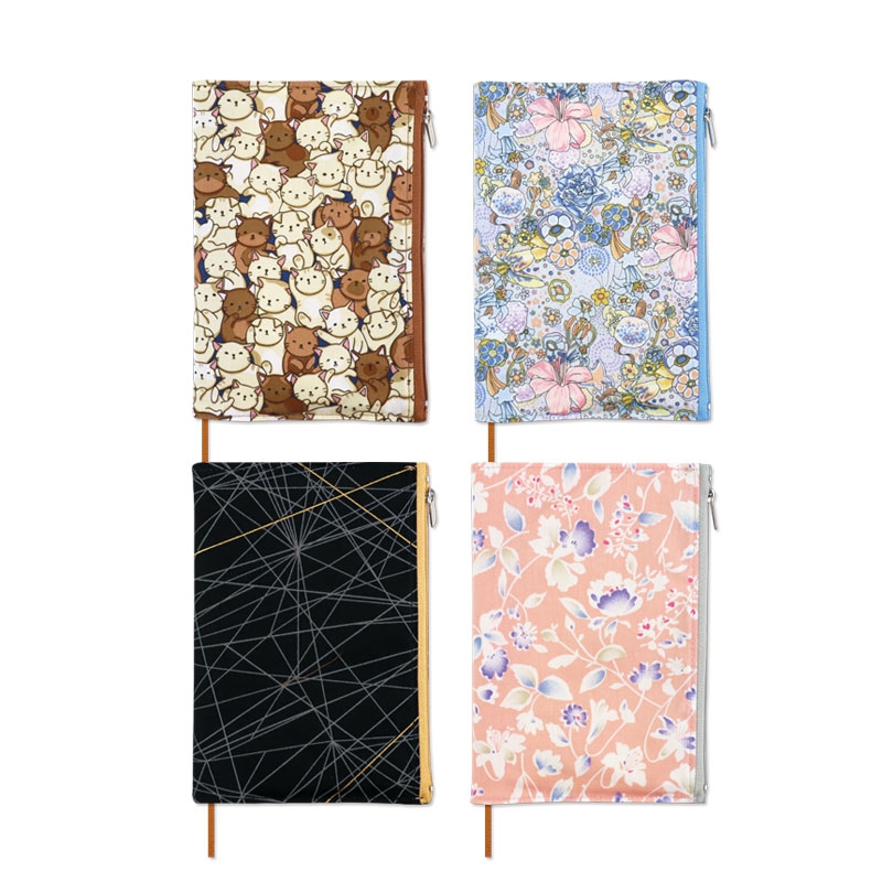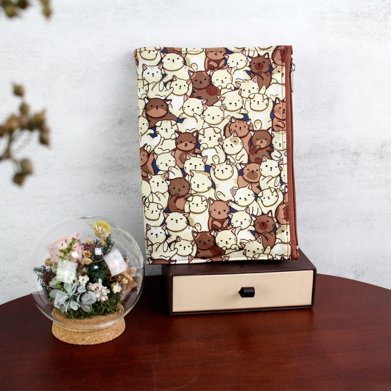 【網路限定】B6/32K花布可調式拉鍊書衣/書皮/書套/書本保護套/花布書衣/布質書衣-01慵懶貓咪