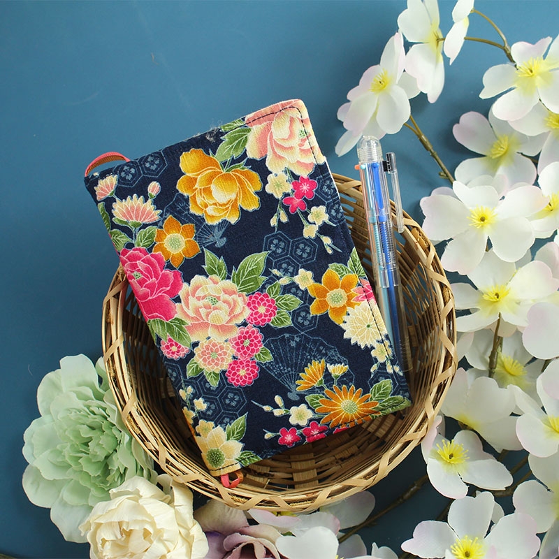 【網路限定】A6/50K日本布可調式書衣/書皮/書套/書本保護套/花布書衣/布質書衣/多功能書衣-01海棠