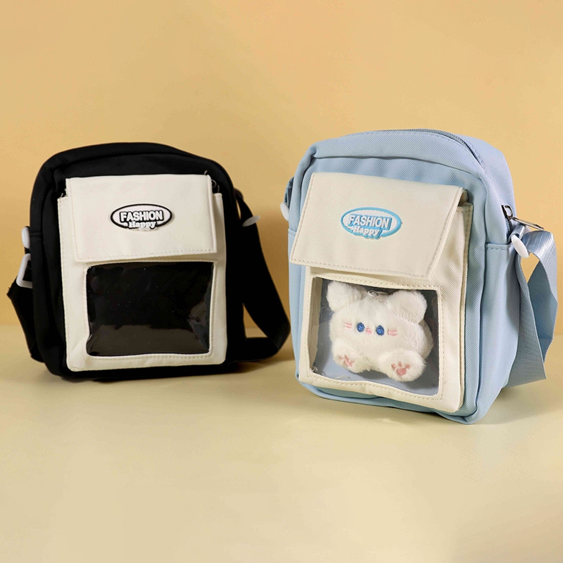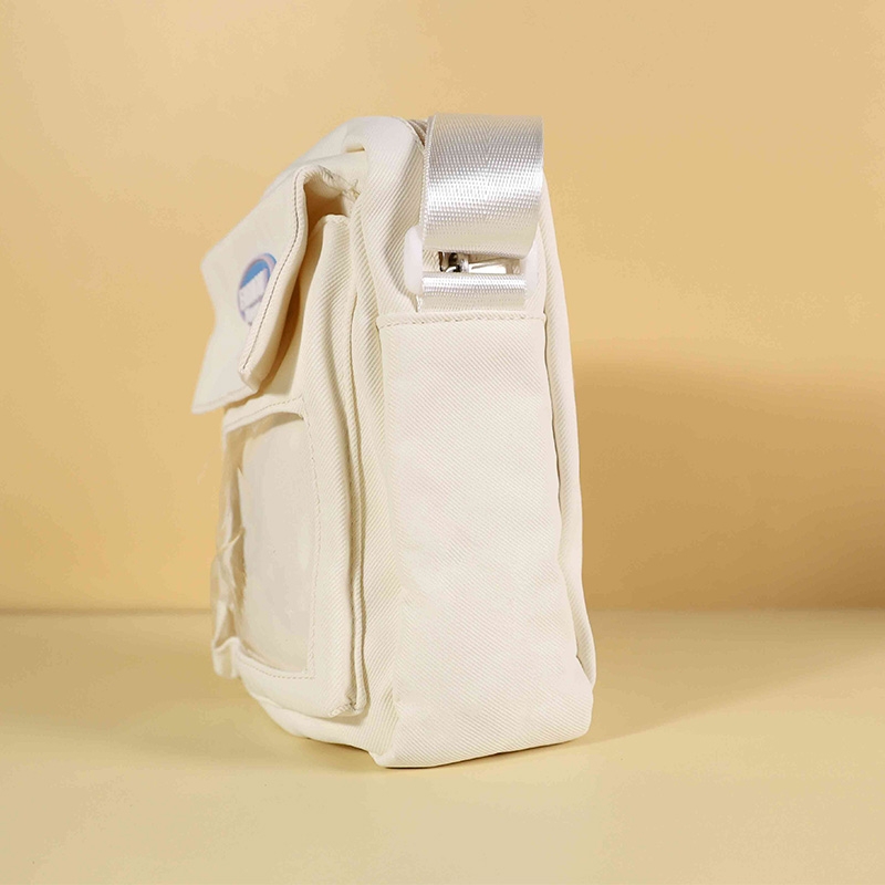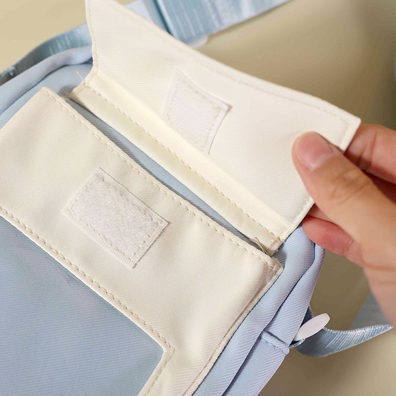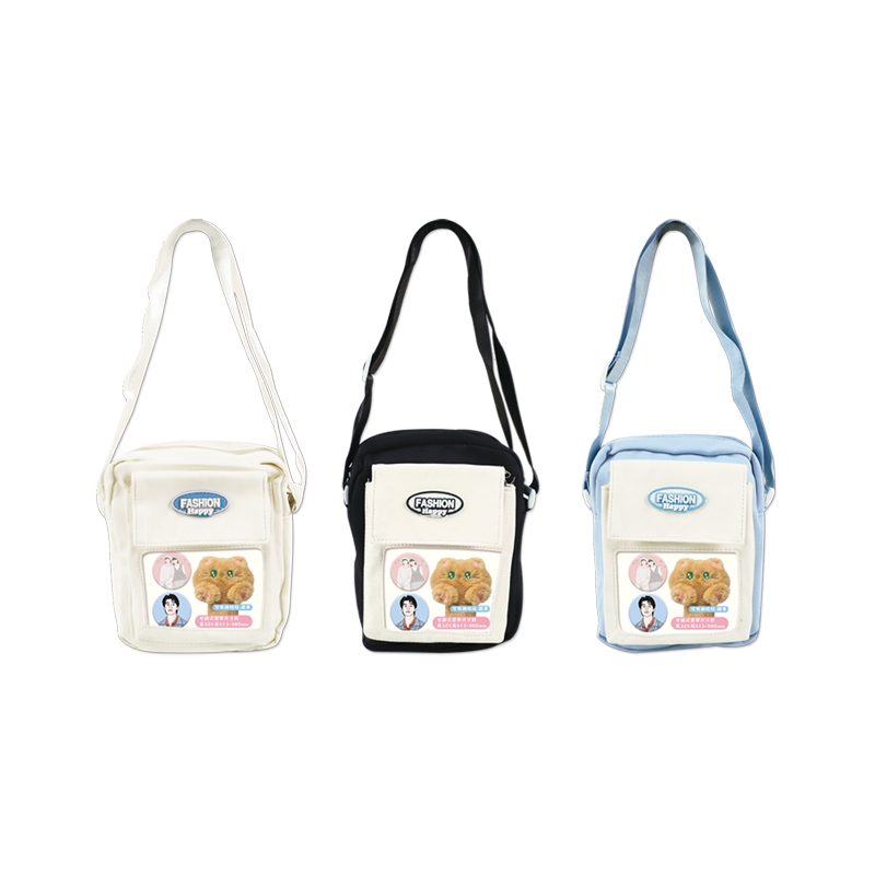 - 前側口袋開窗+魔鬼氈黏合設計,可放娃娃、徽章等小物品
