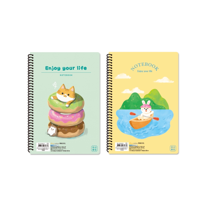 B5/18K線圈筆記(空白)/加厚側翻筆記/圈裝記事本/可愛圖案筆記本/360度翻頁-80張/1本入