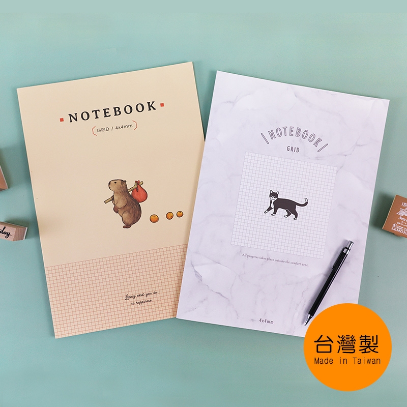 A4/13K定頁筆記/方格4*4mm/側翻筆記/記事本/定頁筆記/32張