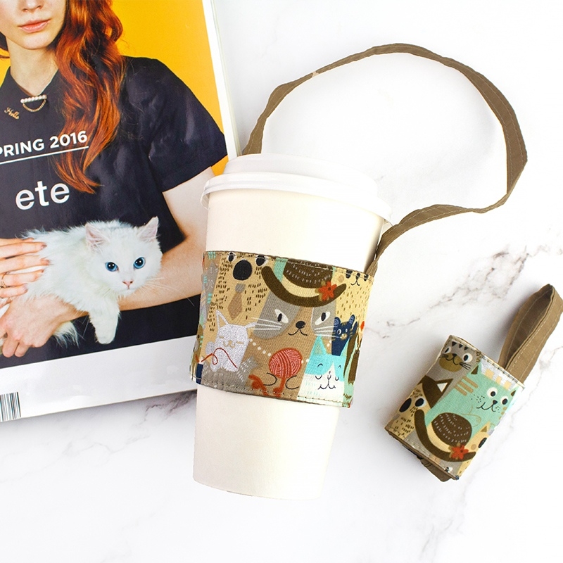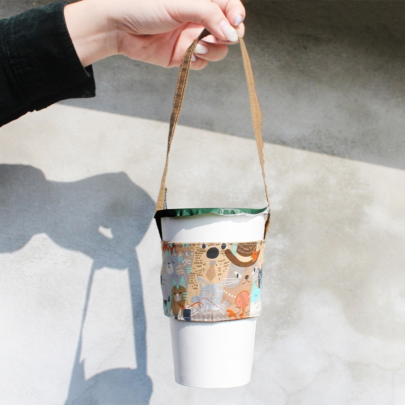 台灣花布飲料杯提袋-可調式杯套飲料杯提袋/減塑行動環保杯套/手提飲料袋/飲料杯袋