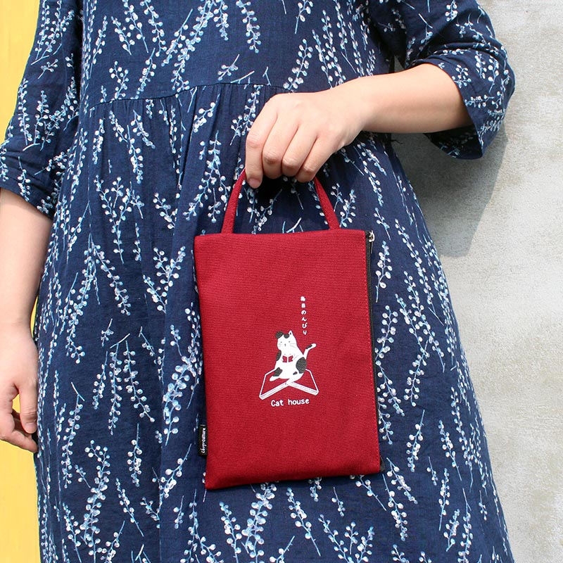 【網路限定】A6/50K台灣棉布直式手提拉鍊攜書袋/手提袋/收納袋(日誌適用)-01復古紅