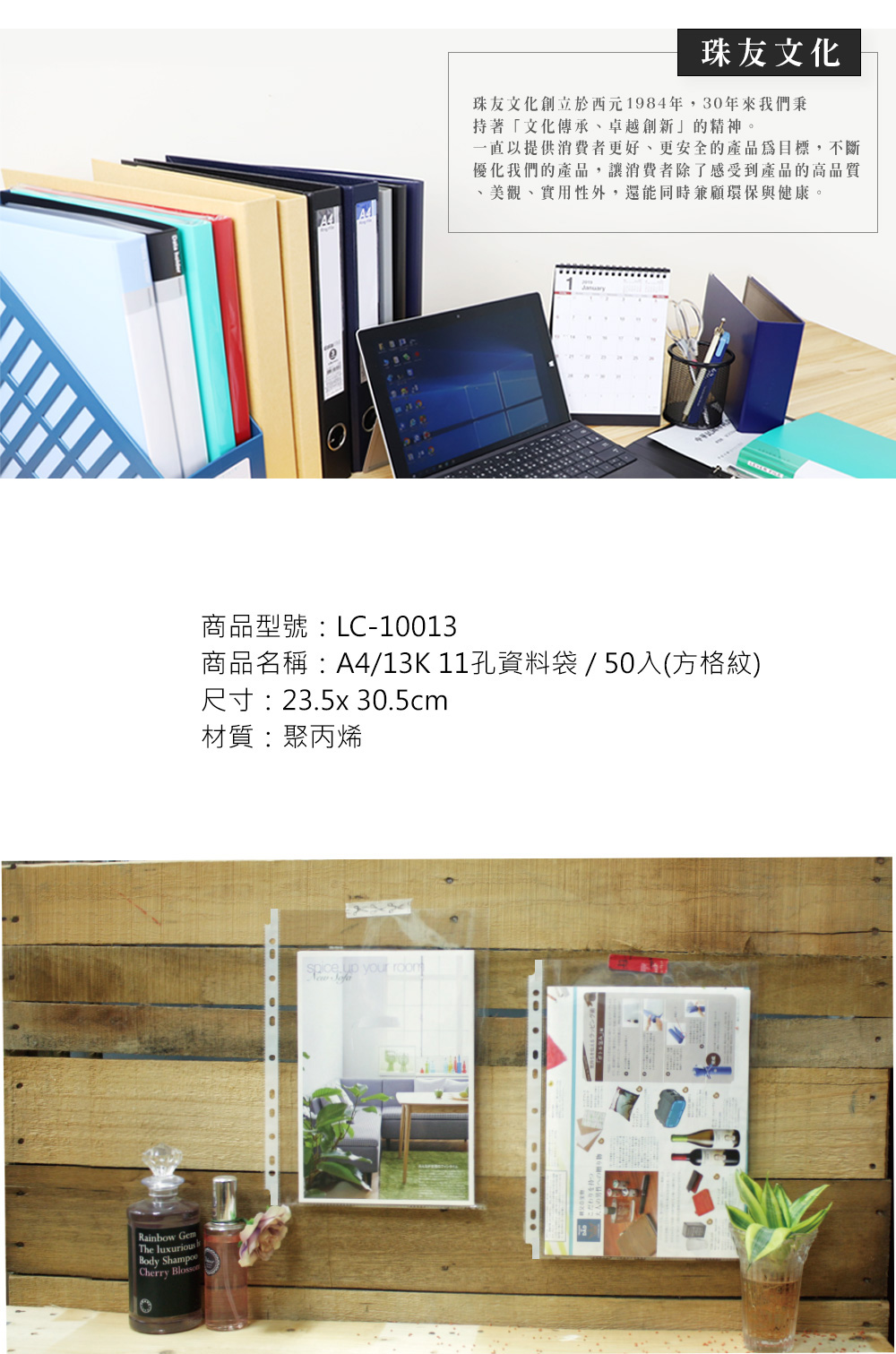 A4/13K 11孔資料袋(方格紋)/活頁透明內袋/文件收納/辦公收納/文件袋/適用2孔夾3孔夾4孔夾-0.04mm/50入