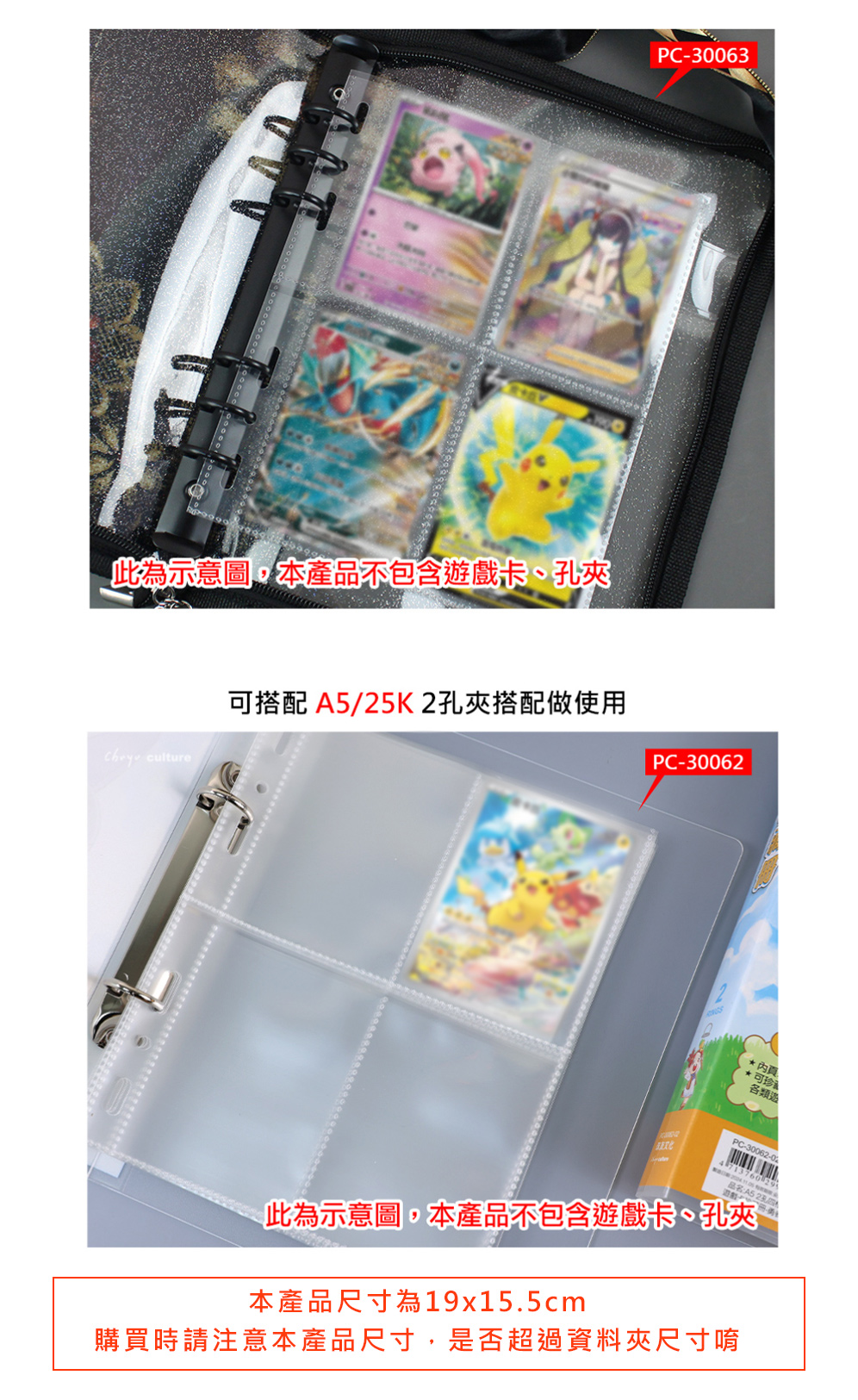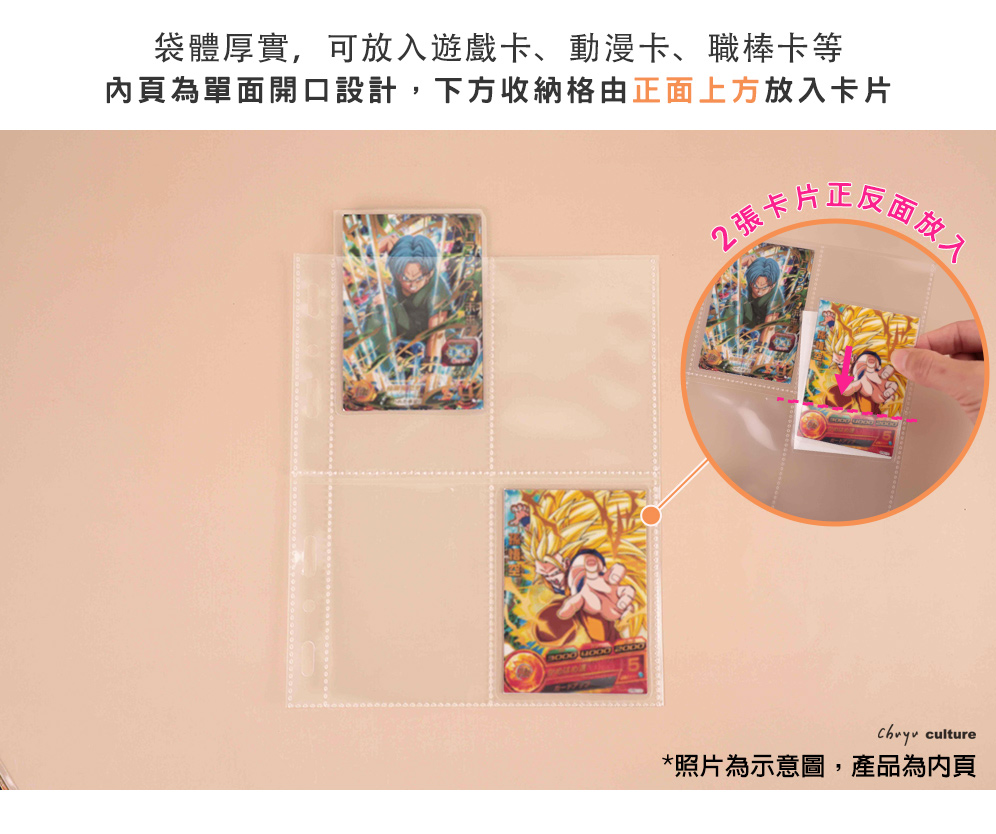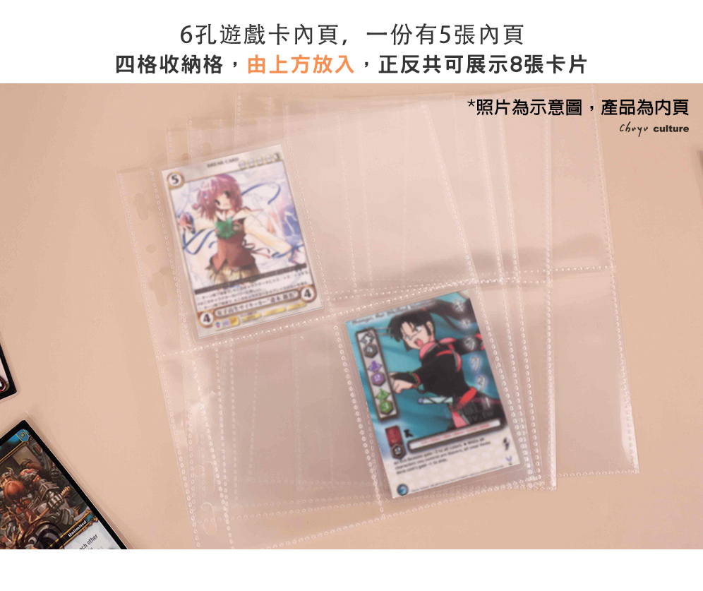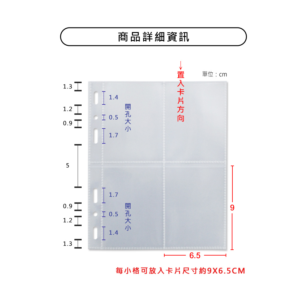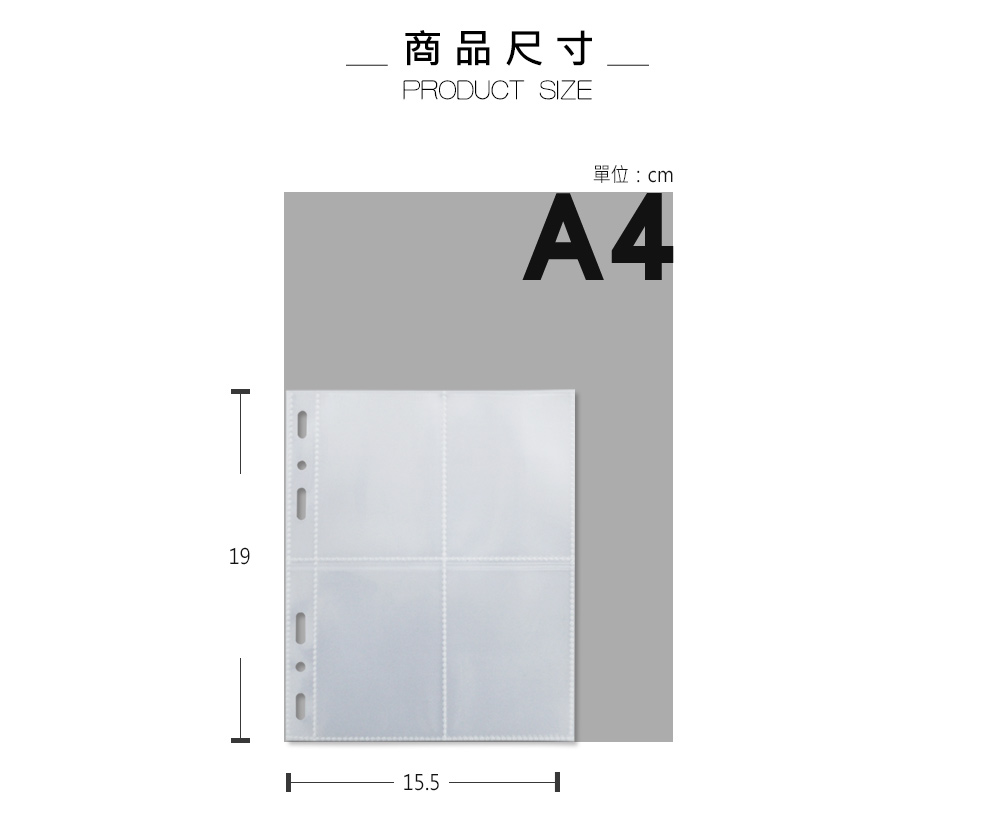 - 一頁4格,每格可放入卡片尺寸約9x6.5cm