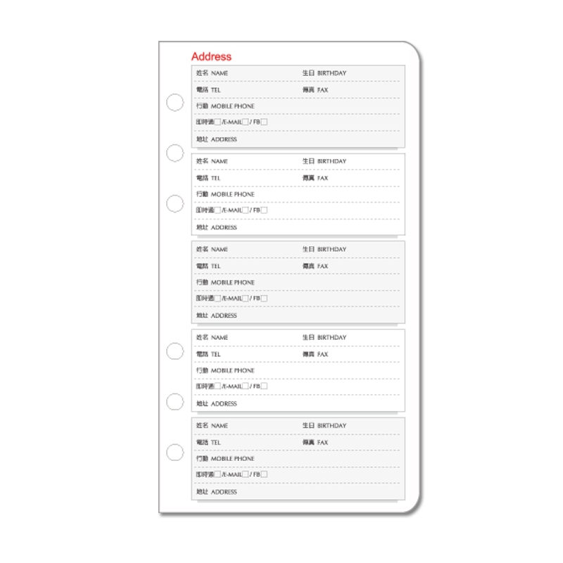 B6/32K 6孔萬用手冊內頁/通訊錄活頁紙/6孔活頁紙/B6活頁紙/活頁筆記本補充內頁/手帳內頁(80磅)20張(適用6孔夾)