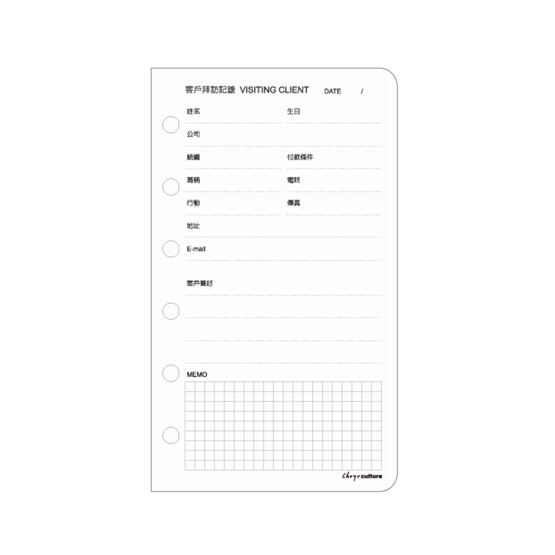 A6/50K 6孔萬用手冊內頁/客戶拜訪記錄/業務記事本/A6活頁紙/活頁筆記本補充內頁/萬用手冊活頁紙/手帳內頁(80磅)20張 (適用6孔夾)