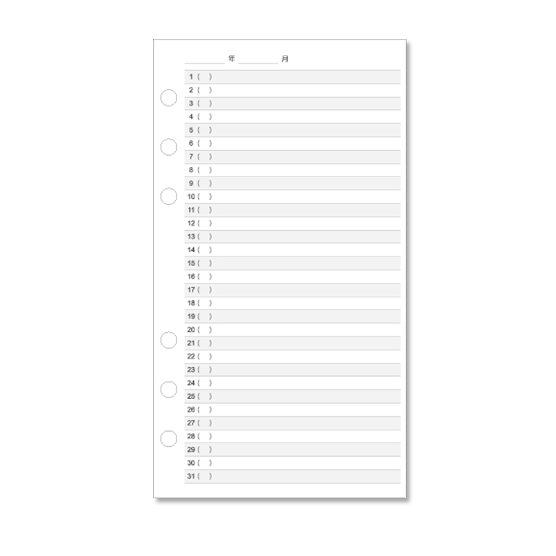 B6/32K 6孔萬用手冊內頁/年度計劃表活頁紙/6孔活頁紙/B6活頁紙/活頁筆記本補充內頁/手帳內頁(100磅)2張(適用6孔夾)