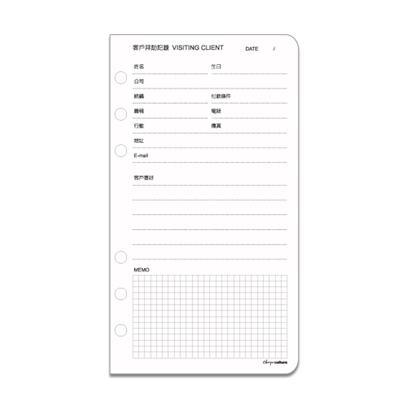 B6/32K 6孔萬用手冊內頁/拜訪記錄活頁紙/6孔活頁紙/B6活頁紙/活頁筆記本補充內頁/手帳內頁(80磅)20張(適用6孔夾)