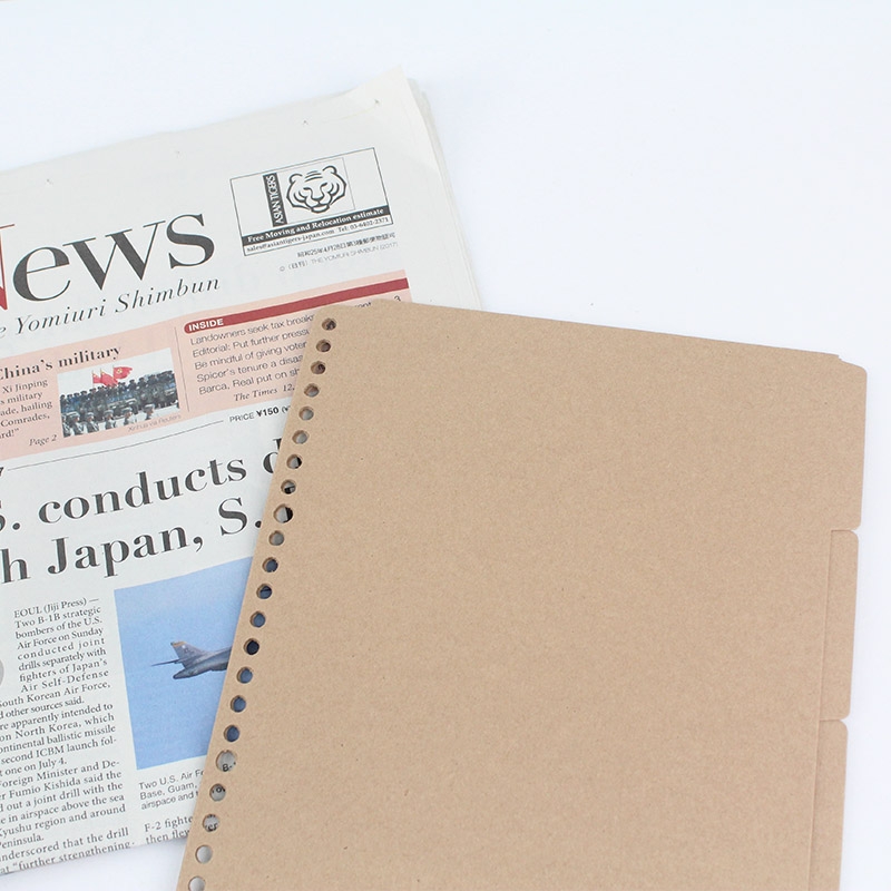 B5/18K26孔牛皮紙色卡(4段)/索引分類/分段卡/分隔頁板/檔案本分隔卡