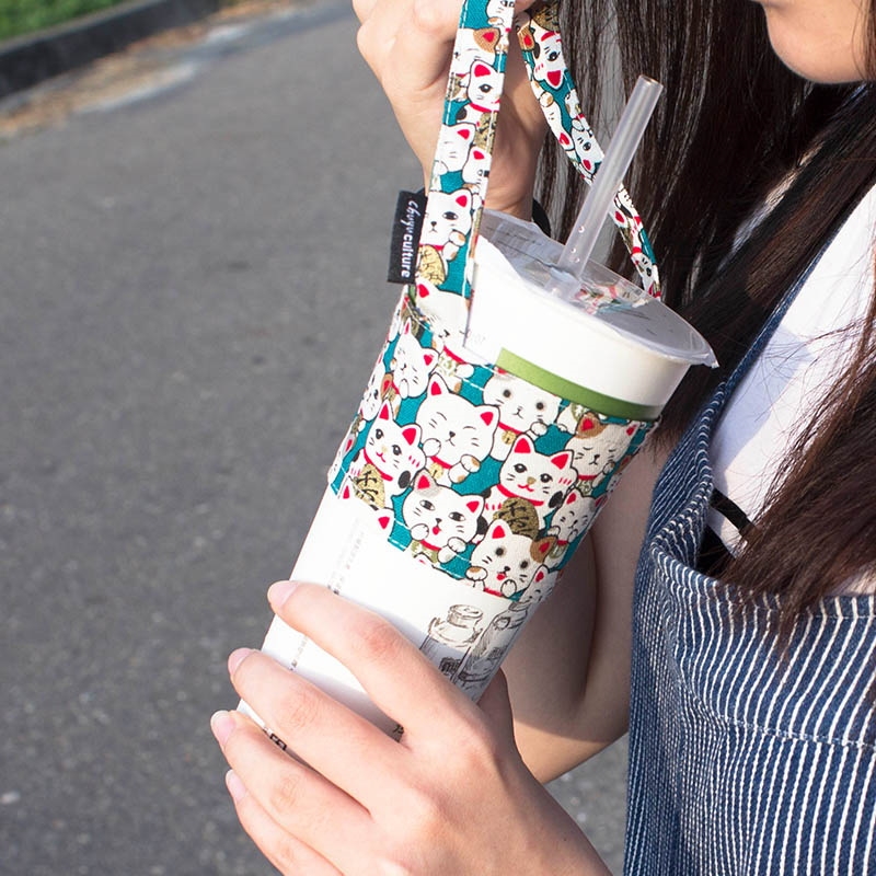 【網路限定】台灣花布寬版飲料杯提袋-杯套式/減塑行動環保杯袋