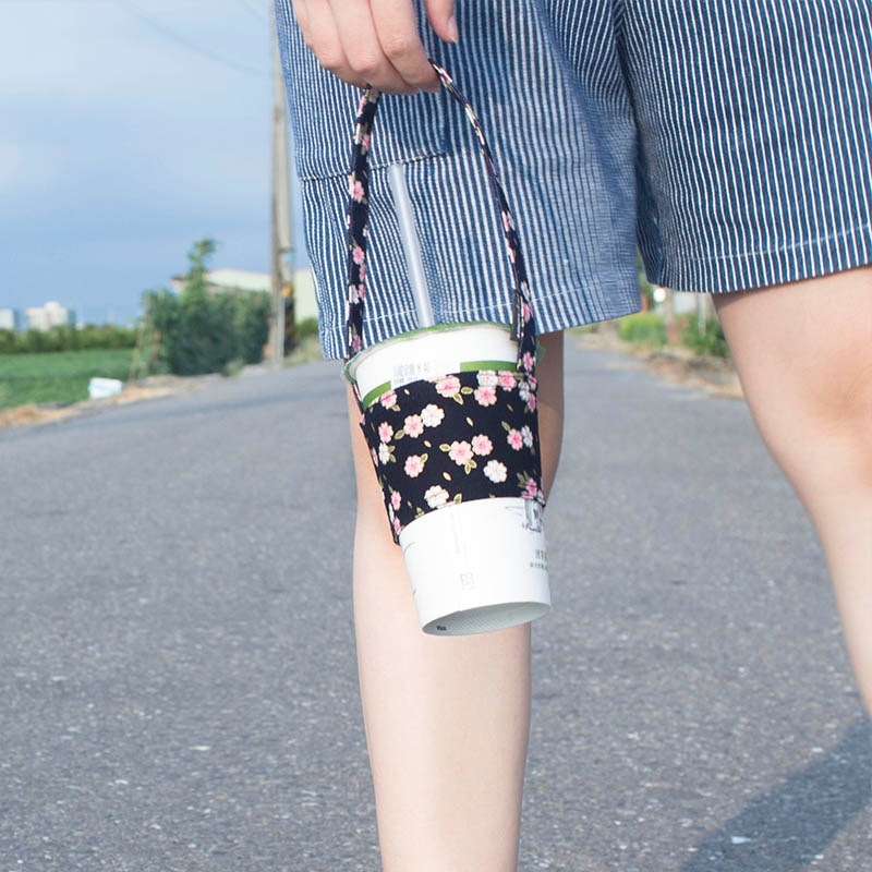 【網路限定】台灣花布飲料杯提袋-可調式杯套/減塑行動環保杯套/手提飲料袋/飲料杯袋