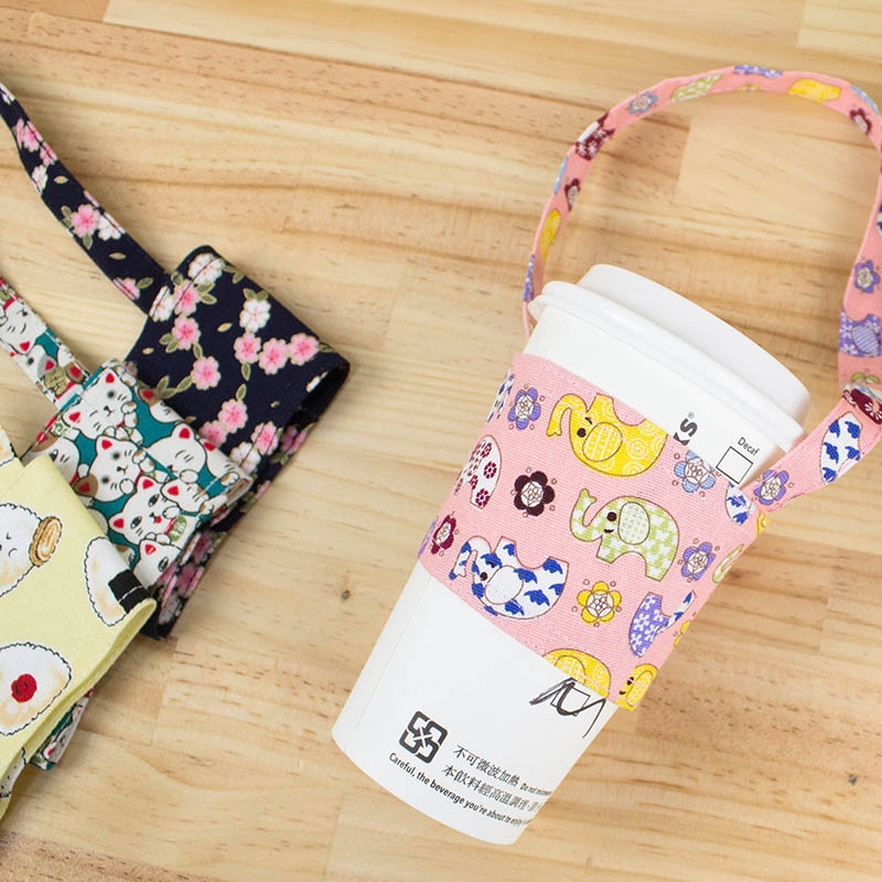 【促銷】台灣花布咖啡杯提袋-可調式提把/環保杯套/手提飲料袋