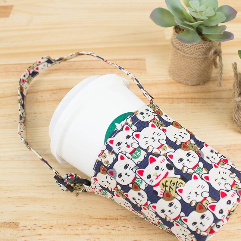 【促銷】台灣花布咖啡杯提袋-可調式提把/環保杯套/手提飲料袋