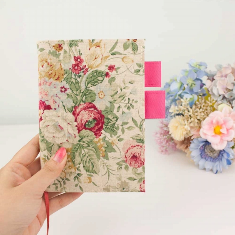 【網路限定】A6/50K 雙筆插款書衣/書皮/書套/書本保護套/花布書衣/布質書衣/多功能書衣-花布