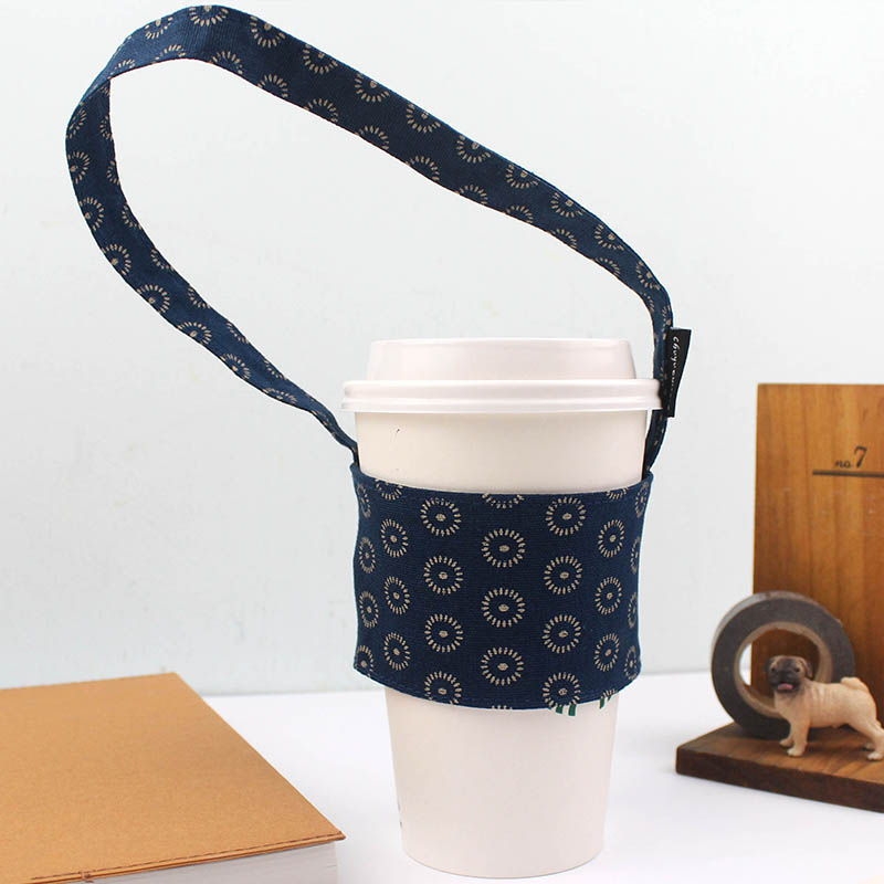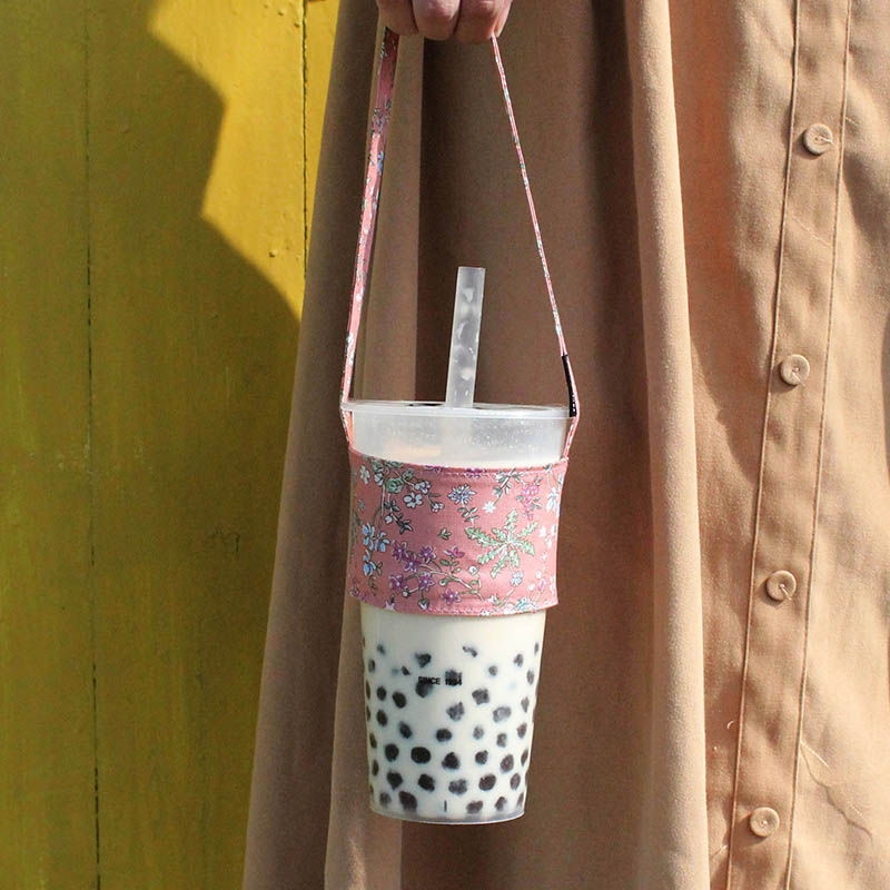 【網路限定】進口花布可調式提把咖啡杯提袋-可調式提把/減塑行動環保杯套/手提飲料袋/飲料杯袋
