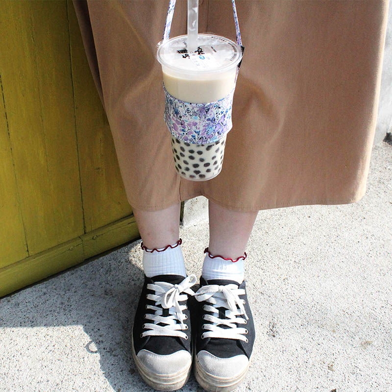 【促銷】台灣花布寬版杯套式飲料杯提袋-杯套式/減塑行動環保杯袋
