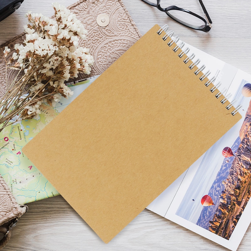 珠友 B5/18K 橫式側翻雙圈繪圖本/硬紙板/加厚封面紙板/圖畫本/原色牛皮/無印牛皮/圖畫紙-40張