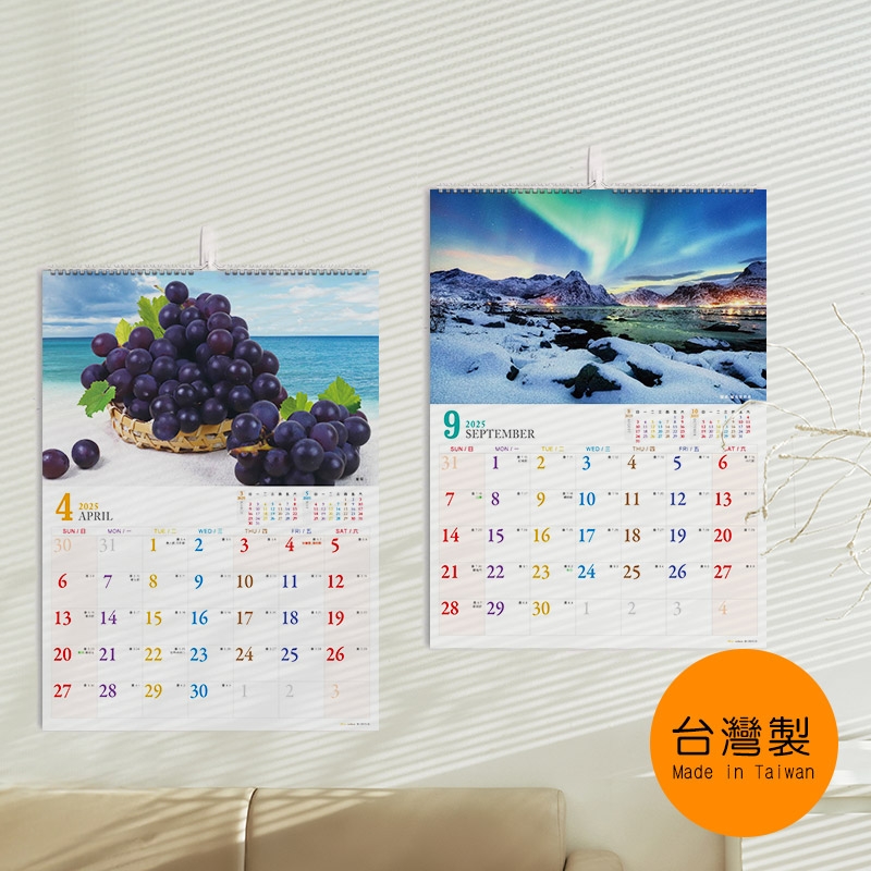 2026年A3吊掛式月曆(風景)/掛曆/壁掛行事曆/風景寫真/掛壁貼牆/大版面/大格記事