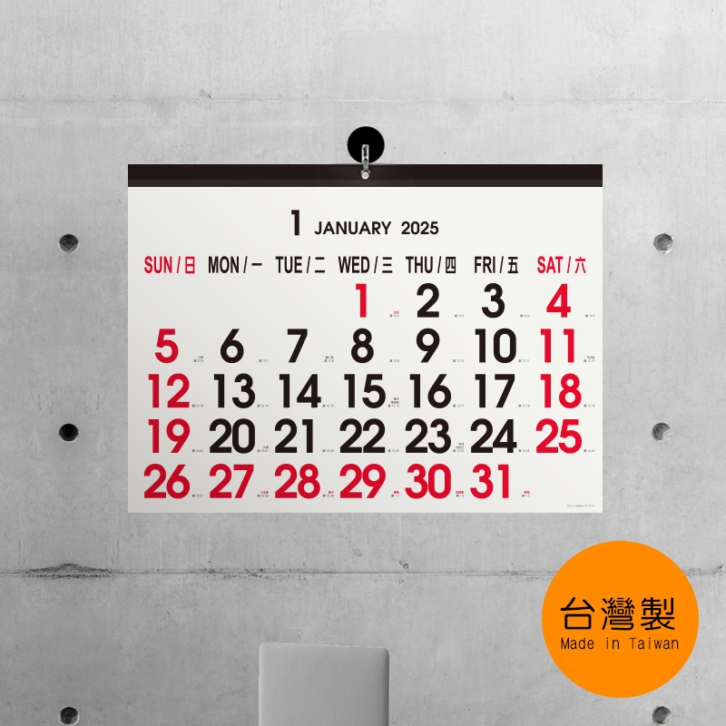 2026年A3吊掛式月曆/掛曆/行事曆/易撕/大版面/大格記事欄/簡單簡約(素面/可撕)