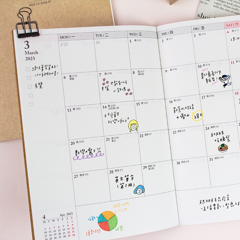 2026年月計劃貼紙/手帳貼紙/行事曆貼紙/月間便利貼