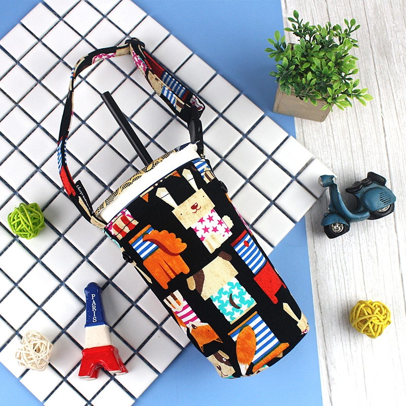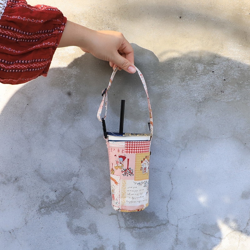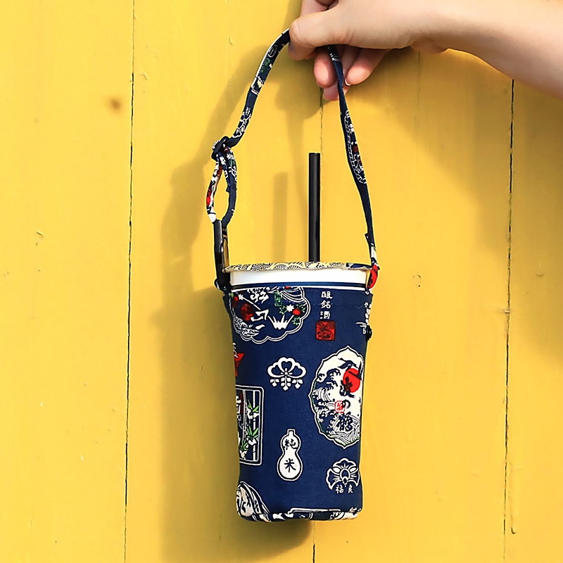 【網路限定】進口花布可調式提把咖啡杯提袋-可調式提把/減塑行動環保杯套/手提飲料袋/飲料杯袋