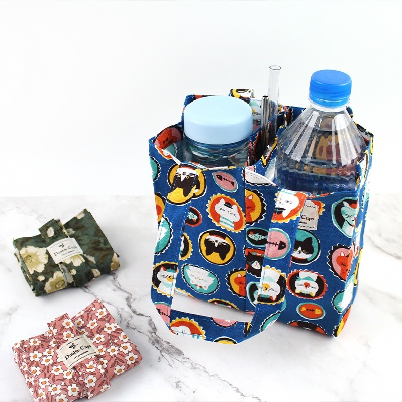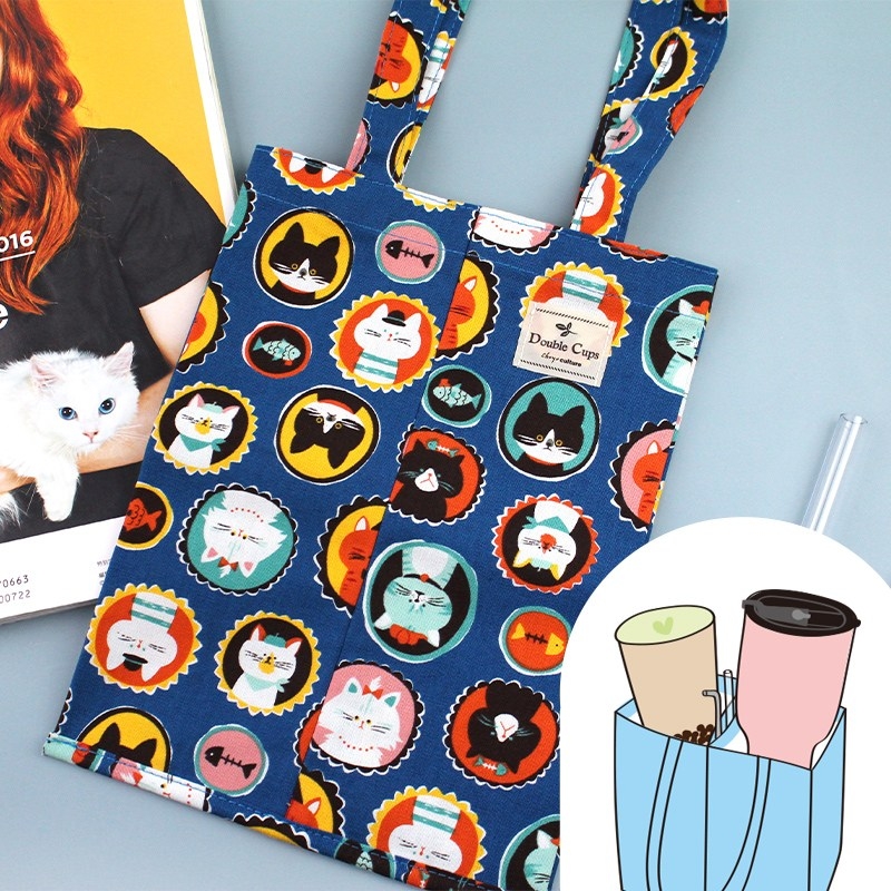 台灣花布雙杯款飲料杯提袋/減塑行動環保杯套/手提飲料袋/飲料杯袋(01-04)
