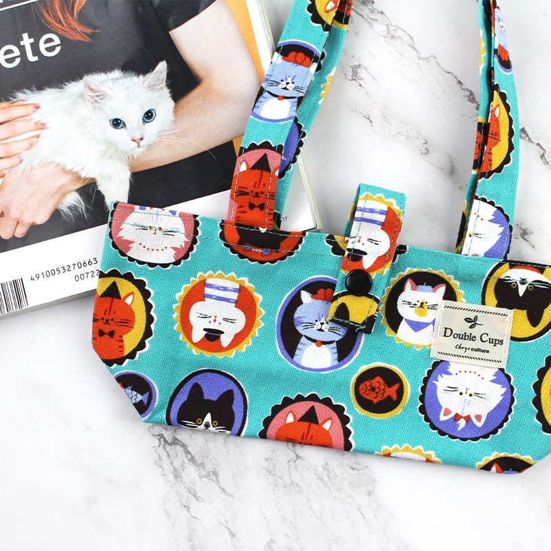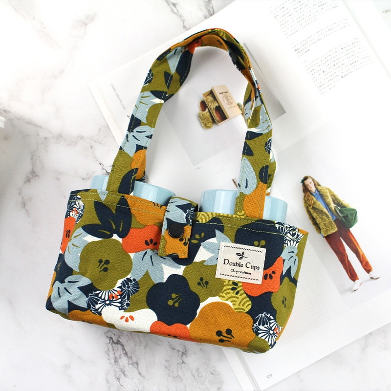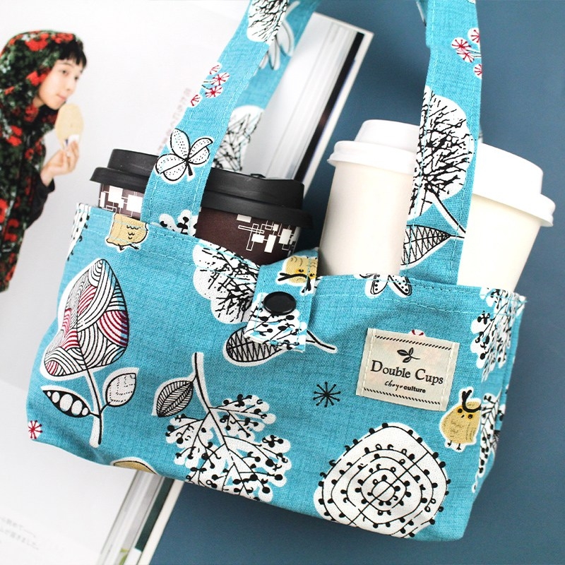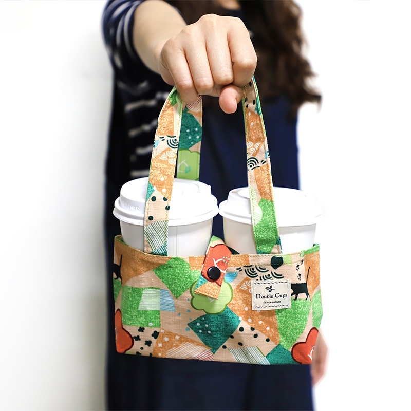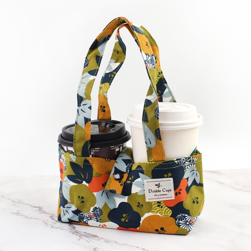【促銷】台灣花布雙杯款咖啡杯提袋/減塑行動環保杯套/手提飲料袋/飲料杯袋(01-04)