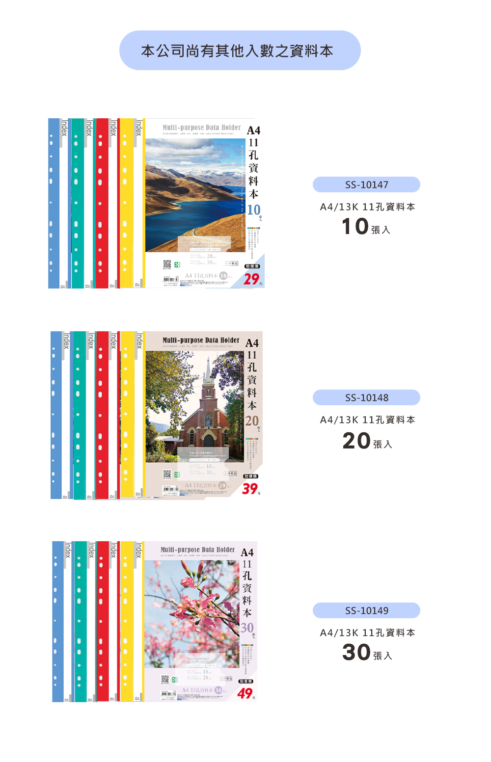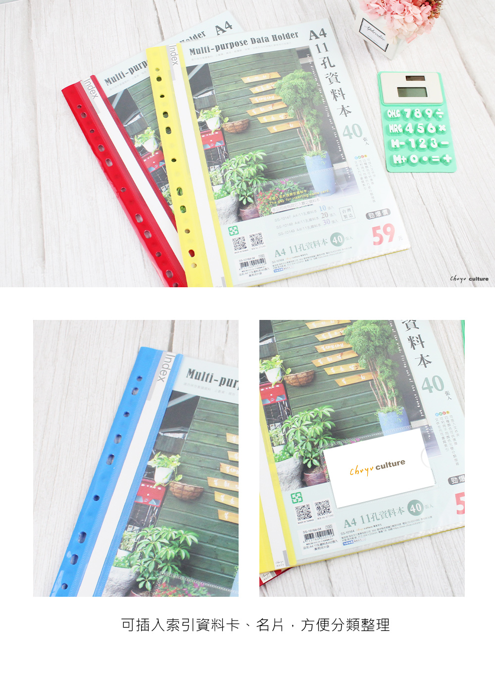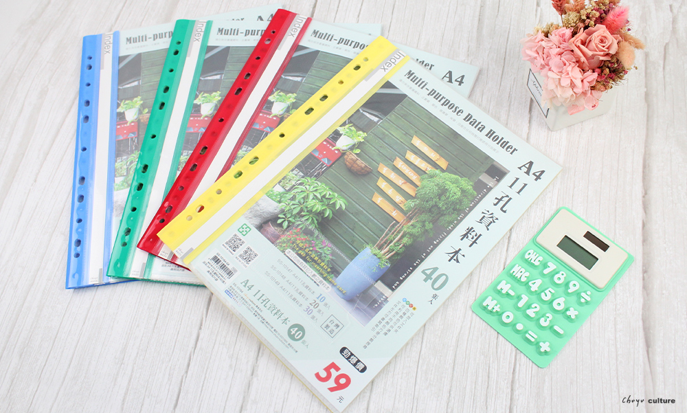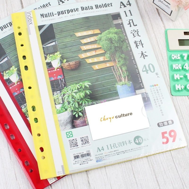 A4/13K 11孔資料本(附名片袋)40張/補充式資料簿/定頁文件夾/資料分類夾/可180度攤平/文件收納/檔案收納/辦公收納/適用2孔夾3孔夾4孔夾(1本)