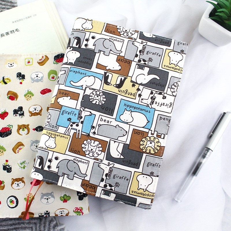 B6/32K 台灣花布可調式棉麻布書衣/書皮/書套/書本保護套/花布書衣/布質書衣-02動物好鄰居