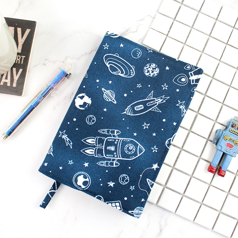 【網路限定】B6/32K台灣花布可調式書衣/厚度可調節書皮/筆記手帳書套/書本保護套/花布書衣/布質書衣-05深藍星宇宙