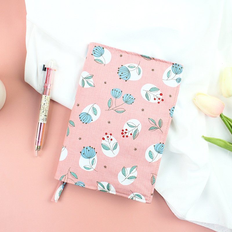 【網路限定】B6/32K台灣花布可調式書衣/厚度可調節書皮/筆記手帳書套/書本保護套/花布書衣/布質書衣-06粉白螢火花