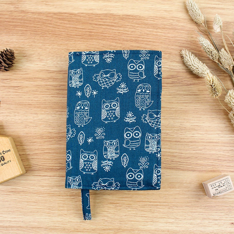 【網路限定】A6/50K可調式書衣/厚度可調節書皮/筆記手帳書套/書本保護套/布質書衣/花布書衣-04貓頭鷹
