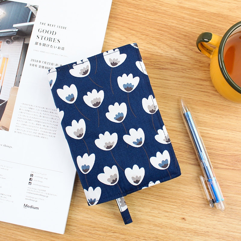 【網路限定】A6/50K可調式書衣/厚度可調節書皮/筆記手帳書套/書本保護套/布質書衣/花布書衣-06掌花藍
