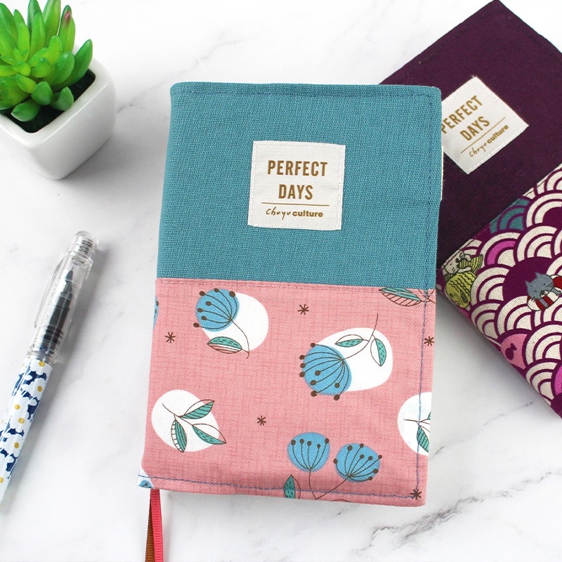 【網路限定】A6/50K 台灣花布拼色可調式棉麻布書衣/書皮/筆記手帳書套/書皮手帳書套/書本保護套/花布書衣/布質書衣/多功能書衣-04螢火花