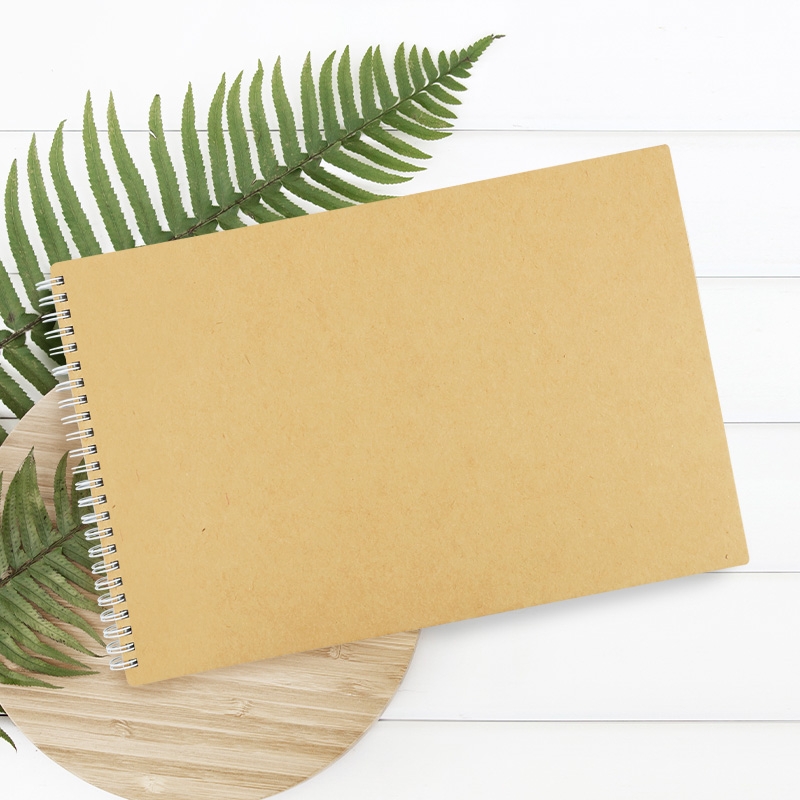 珠友 B5/18K 橫式側翻雙圈繪圖本/硬紙板/加厚封面紙板/圖畫本/原色牛皮/無印牛皮/圖畫紙-40張