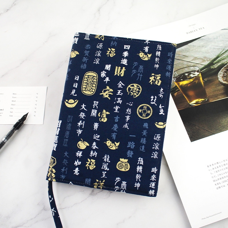 【網路限定】B6/32K 花布可調式書衣/書皮書套/書本保護套/布質書衣/花布書衣-01丈青吉言集