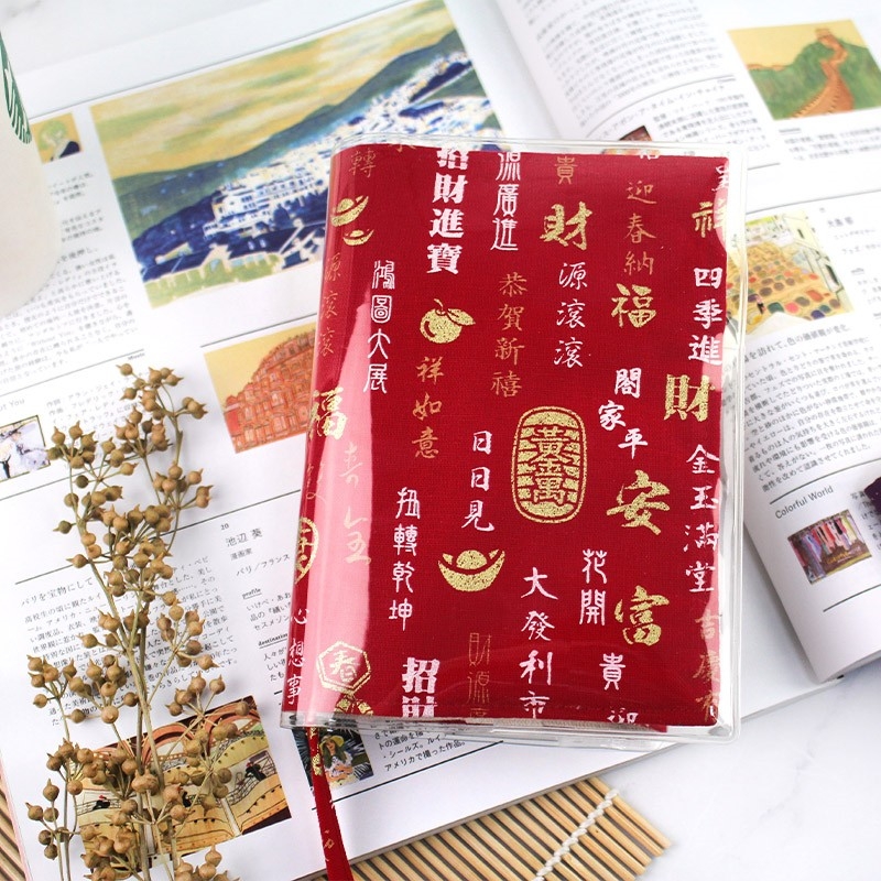 【網路限定】A6/50K 花布可調式書衣/書皮書套/書本保護套/布質書衣/花布書衣-01深紅吉言集