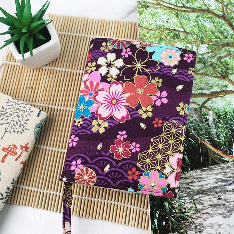 【網路限定】A6/50K 花布可調式書衣/書皮書套/書本保護套/花布書衣/布質書衣-02燙金櫻花繡