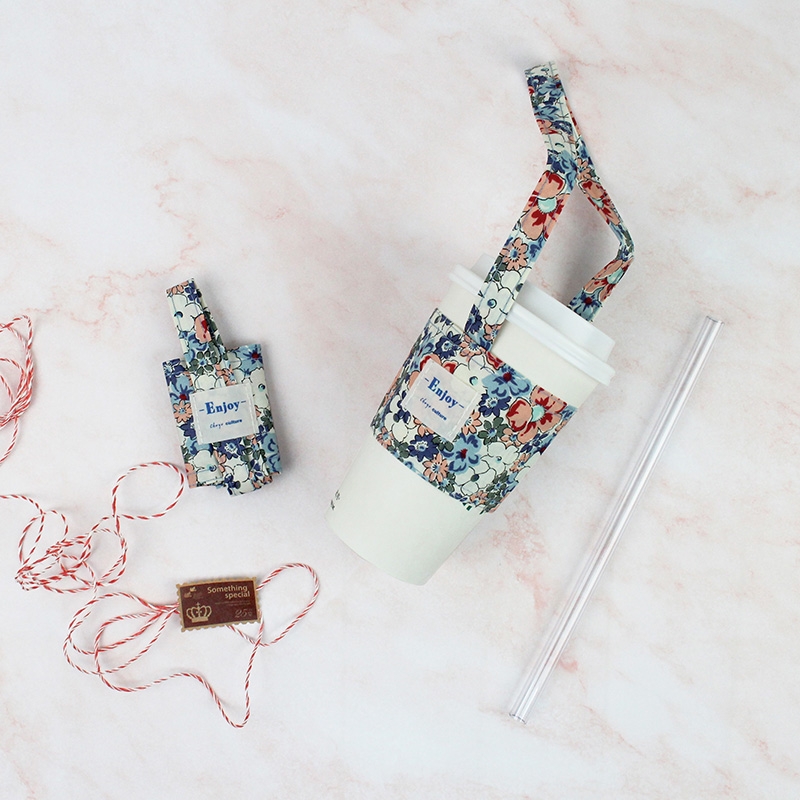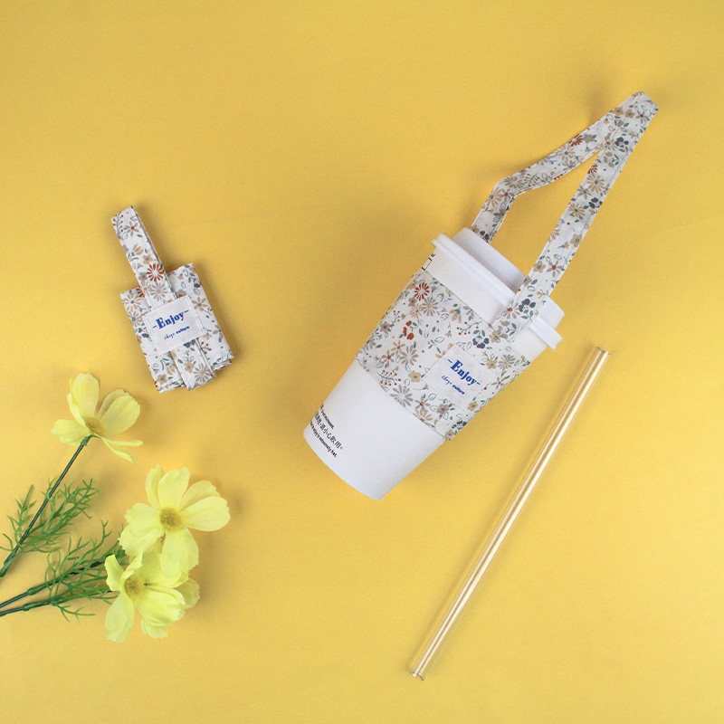 【網路限定】進口花布可調式提把咖啡杯提袋-可調式提把/減塑行動環保杯套/手提飲料袋/飲料杯袋