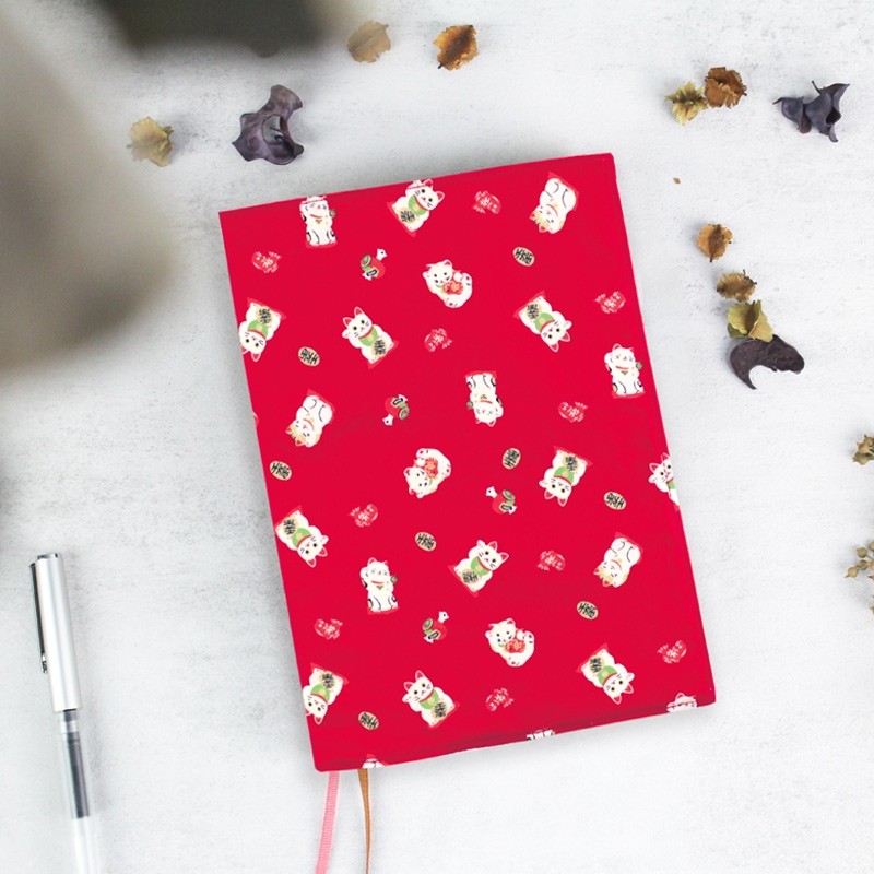 【網路限定】25CM高台灣花布多功能可調式書衣/書皮/書套/書本保護套/花布書套/布質書衣-02招財福貓