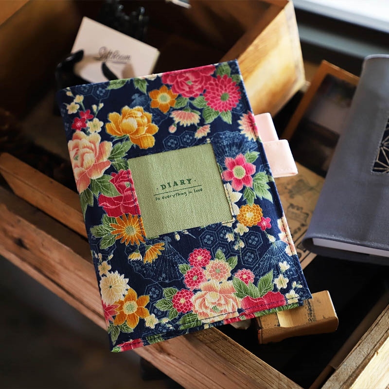 【網路限定】珠友 B6/32K花布雙筆插書衣/日本花布/書皮手帳書套-01-04