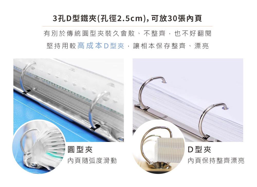 - 採用世界牌D型鐵夾,品質保證