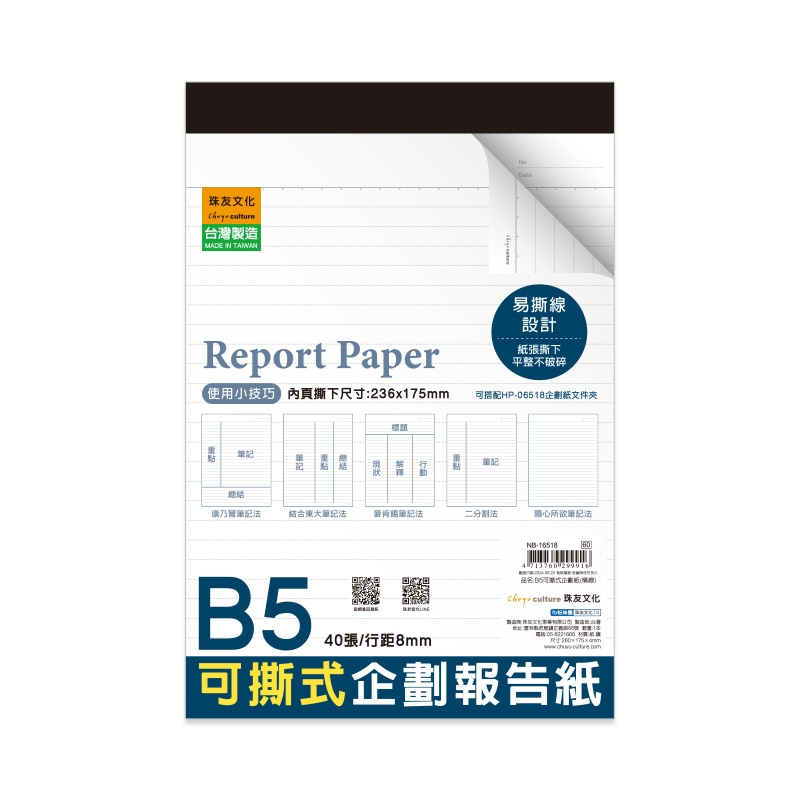 B5/18K可撕式企劃紙(橫線)/報告紙/企劃本/上翻筆記/計算紙-40張